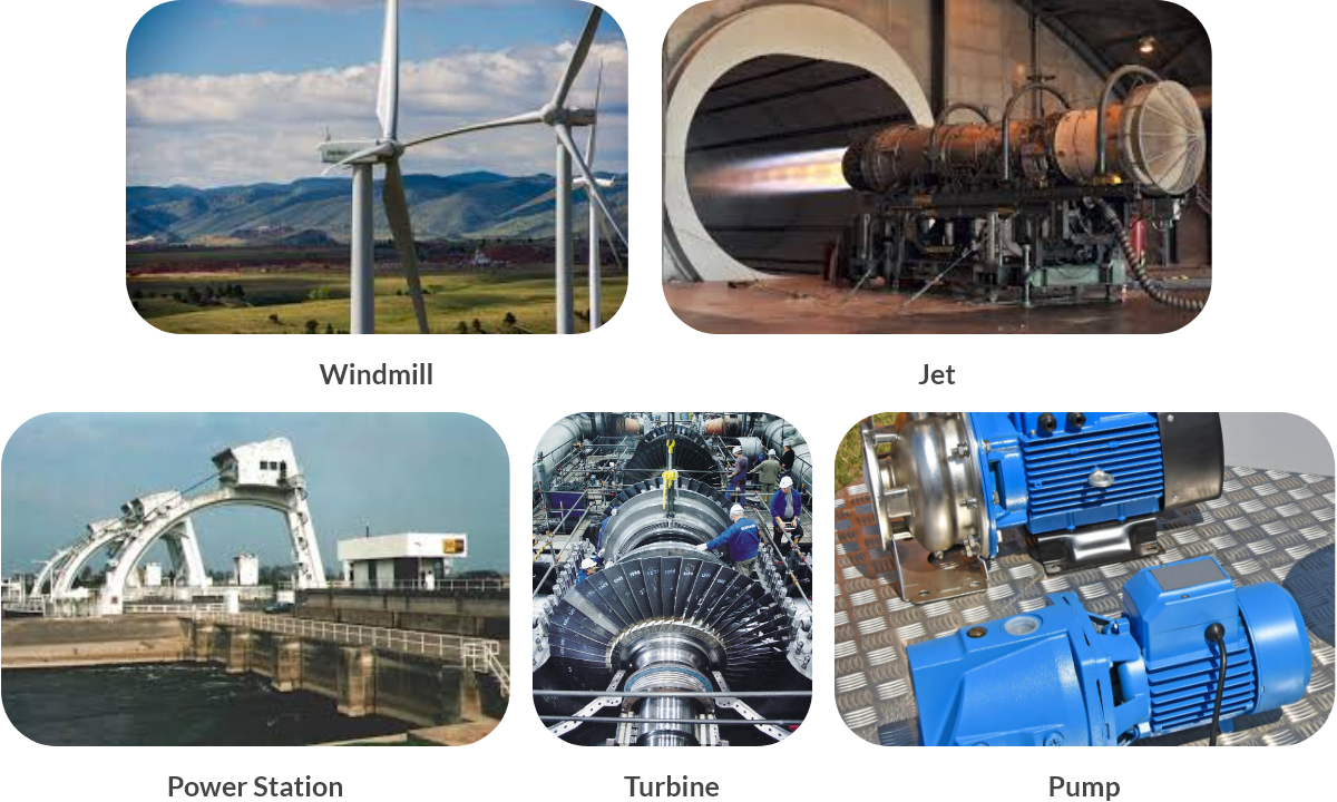 The number of devices and processes in which flow and/or heat play a major role during the design is endless, see Fig. 3.1 for a few examples. In this chapter we first look at flow machines, where heat does not yet play a role, in the next chapter heat is also discussed. The most important role of flow machines is to convert kinetic or potential energy in the flow into mechanical energy (e.g. wind turbines) or vice versa (e.g. liquid pump).
