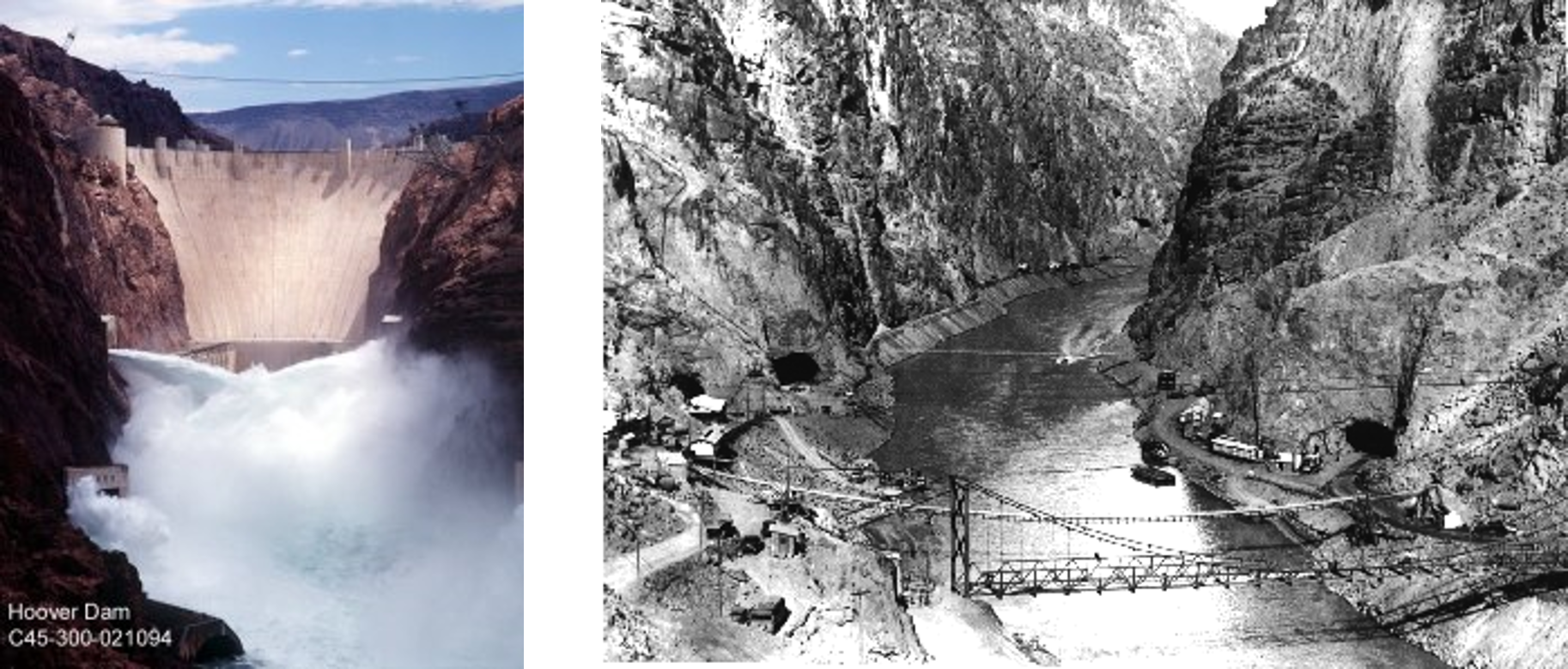 Fig. 3.14 (a) De hydroelectric station in the Hoover dam, (b) the canyon before the construction of the hydroelectric plant.#