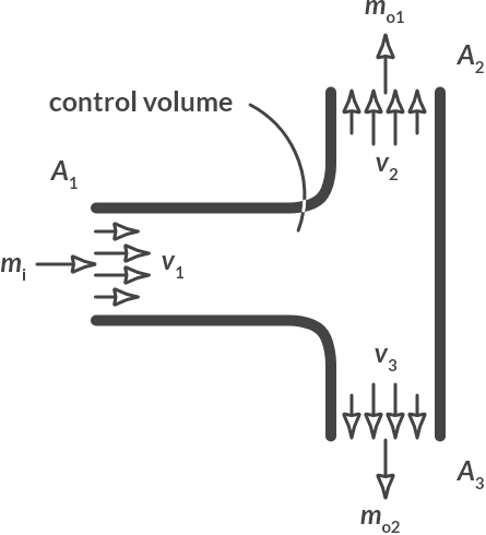 Fig. 3.5 T-piece with incoming and outgoing mass flows.#